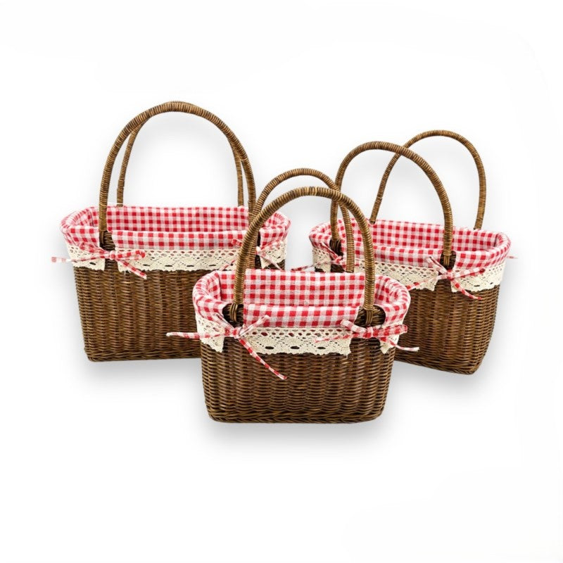 Dieses dreiteilige Rattan-Korbset bietet eine stilvolle und zugleich funktionale Aufbewahrungslösung für Ihr Zuhause. Gefertigt aus natürlichem Rattan und ausgestattet mit einem rot-weiß karierten Stofffutter, verbinden die Körbe rustikalen Charme mit praktischer Alltagstauglichkeit. Die verschiedenen Größen machen sie vielseitig einsetzbar, ob für Wäsche, Spielzeug, Bücher oder andere Haushaltsgegenstände.