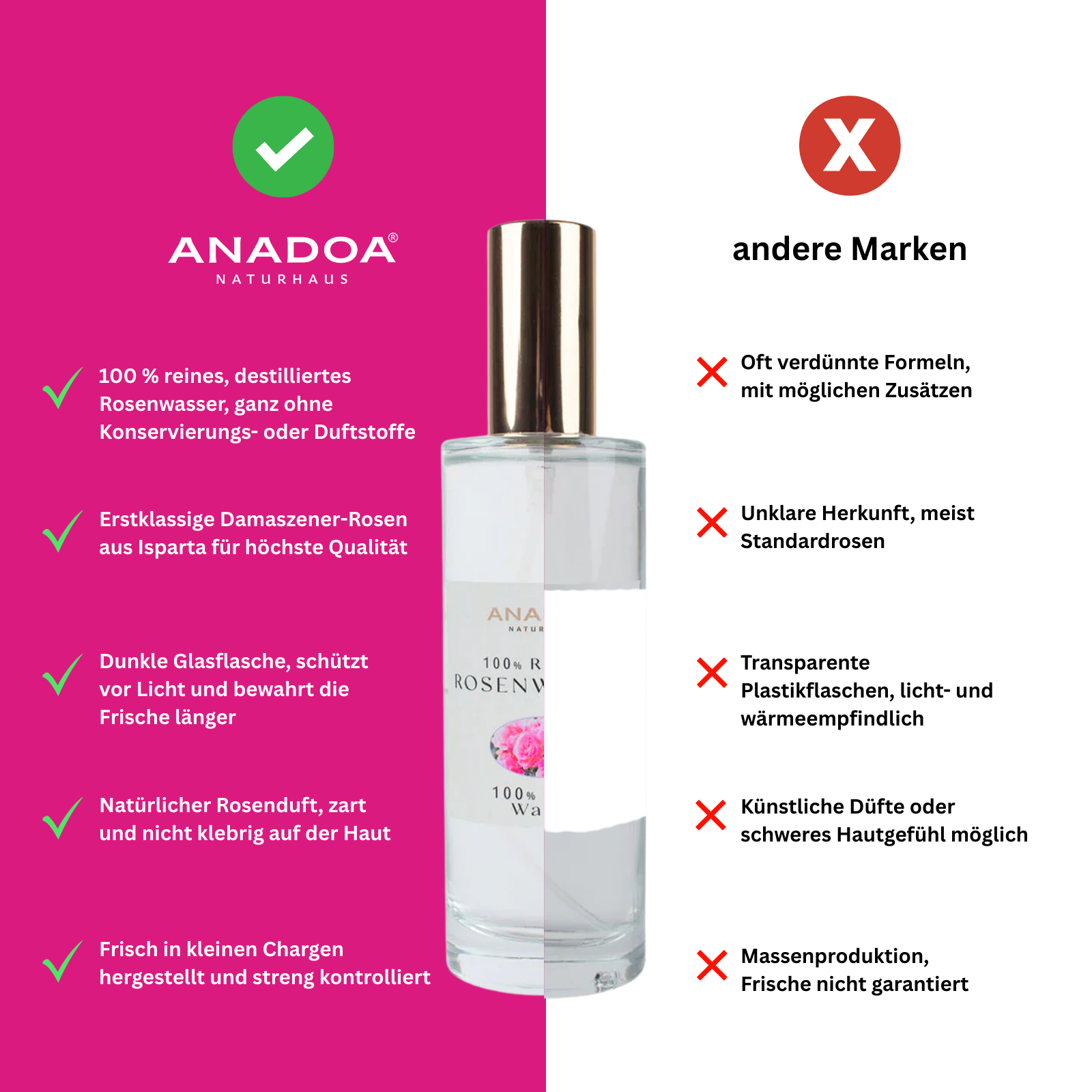 Hydrating: The moisturizing power of rose water soothes and refreshes your skin, ideal for daily use and to provide your skin with the necessary moisture.