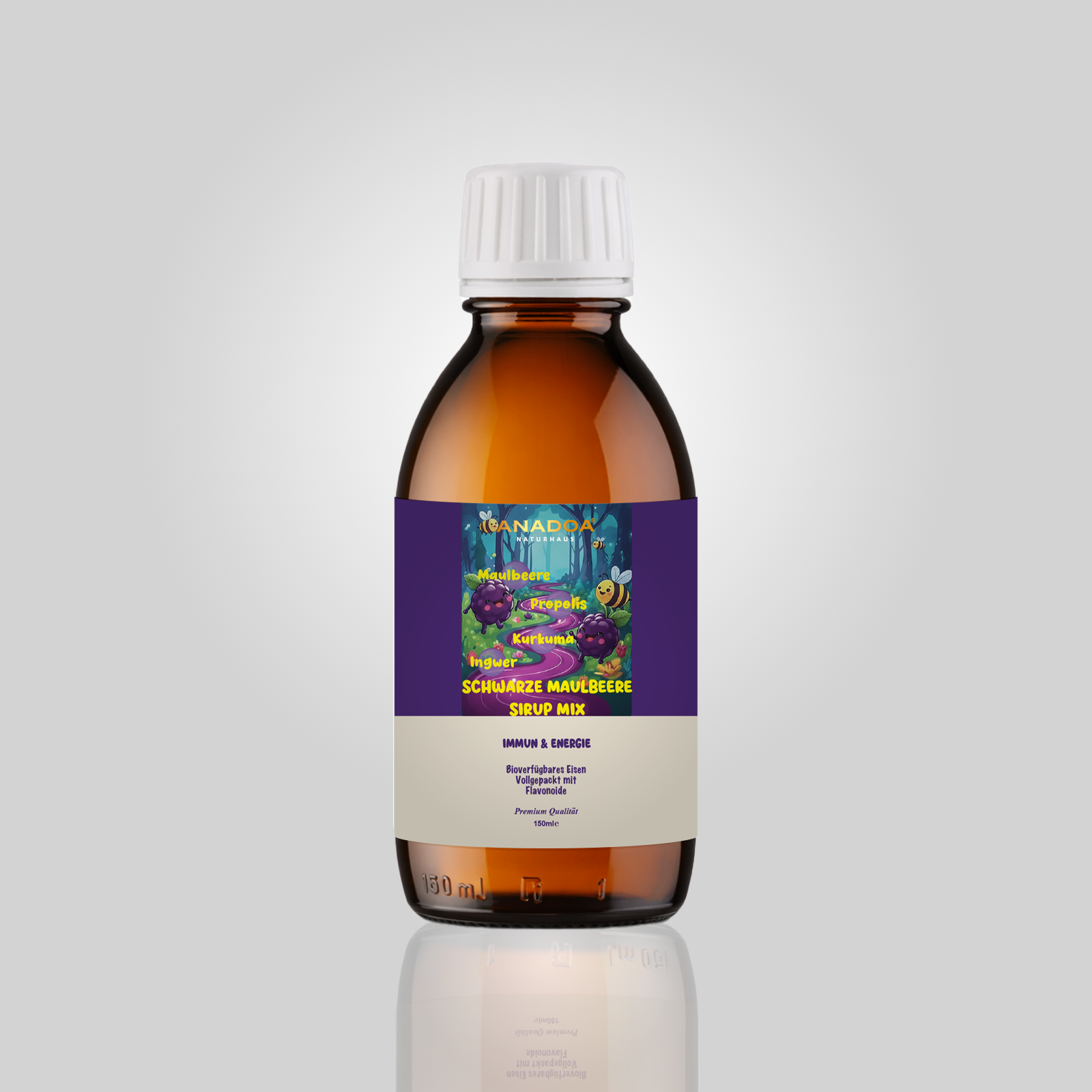 Dieser besondere Mix ist weit mehr als ein klassischer Fruchtsirup: Er vereint hochwertigen Extrakt aus schwarzer Maulbeere mit feinem Honig sowie ausgewählten Naturstoffen wie Propolis, Ingwer und Kurkuma. Für Eltern, die einen Maulbeer-Sirup kaufen möchten, der auf Reinheit, Natürlichkeit und sorgfältige Verarbeitung setzt, ist dieses Produkt eine bewusste Wahl.