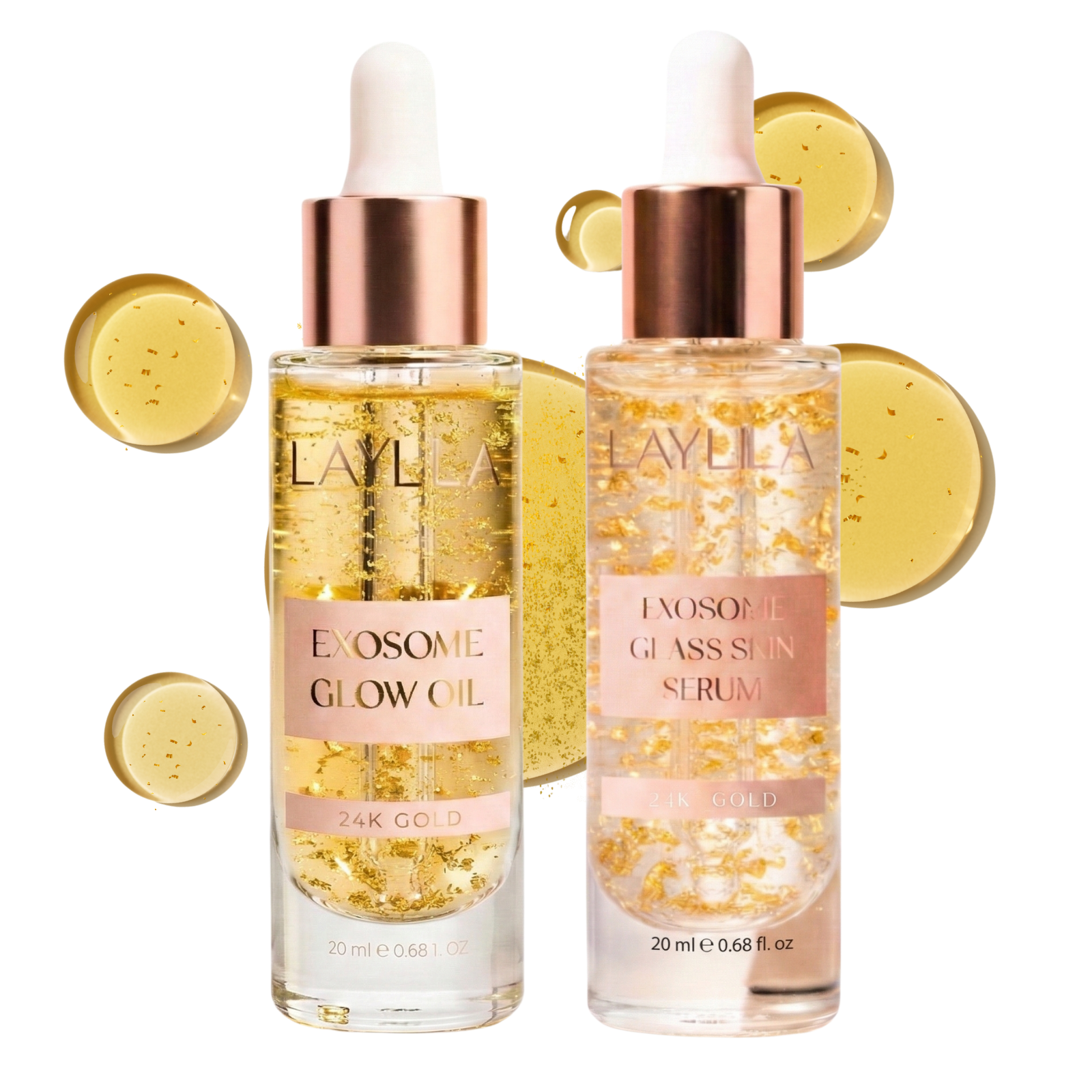 Işıltılı bir cilt için Glow Oil ve Glass Skin Serum içeren Exosome bakım ikilisi