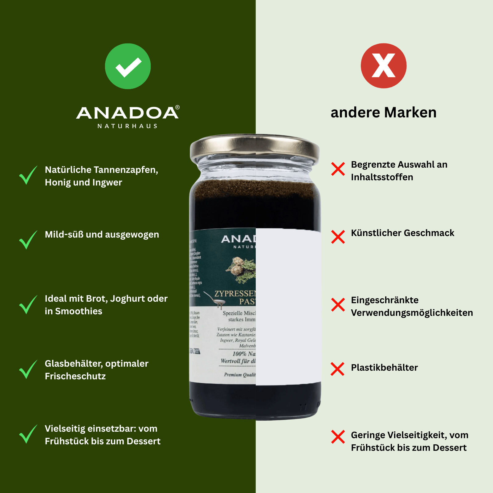 Çam kozalağı macunumuz, kanıtlanmış bitkisel içeriklere dayanmaktadır ve nesilden nesile takdir edilen orijinal bir tarifi temsil etmektedir.